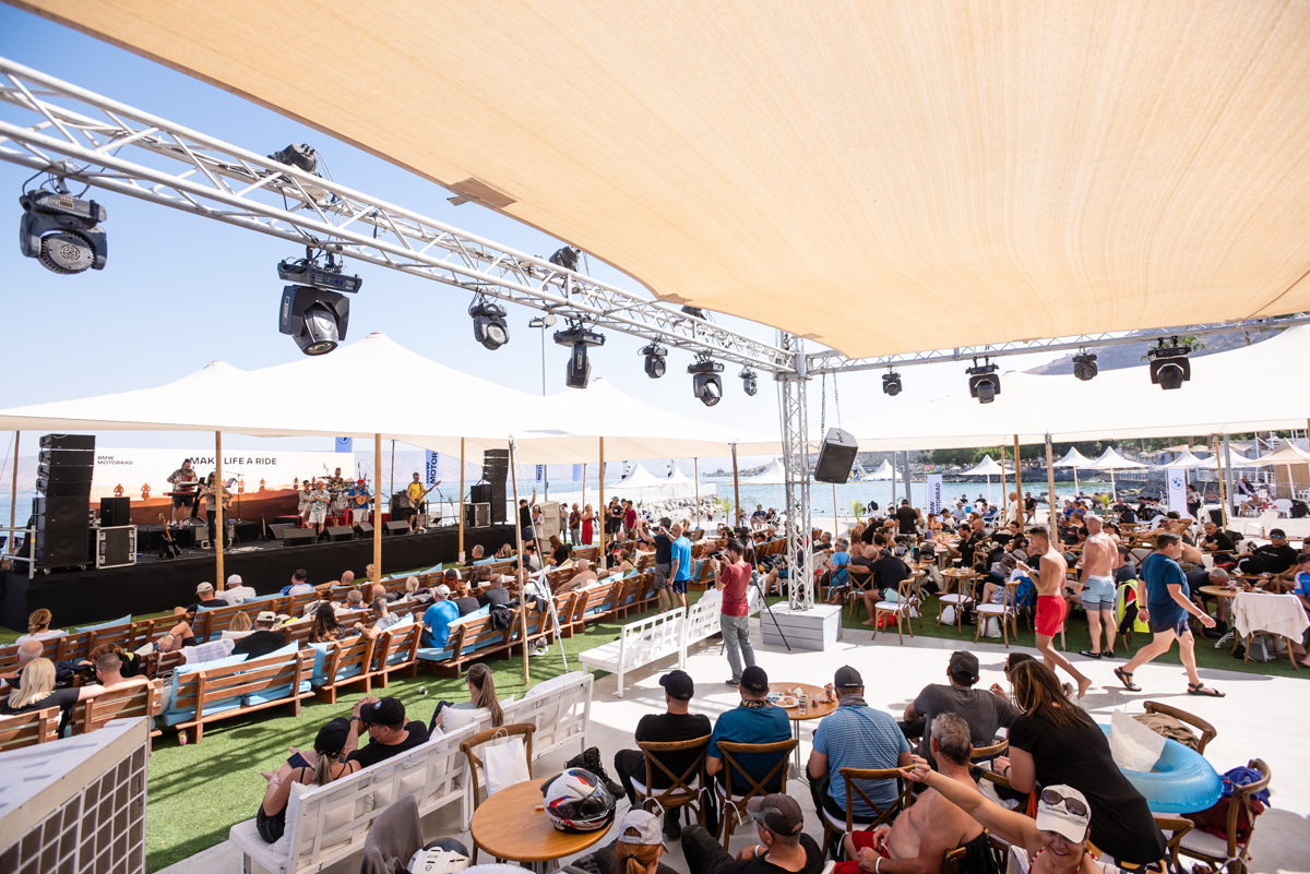בסאות' ביץ' עברנו בבת אחת מהריכוז של הרכיבה – לאווירת צ'יל. המתחם כולו היה מוצל וקושט בצבעי וסמלי המותג וכלל פינוקים כמו: רחצה בחוף פרטי, ספורט ימי, אוכל טעים ממגוון סוגים וכחלק מהמסורת גם הופעה מעולה של טיפקס. דלק מוטורס העתיקו את חנות האביזרים לחוף במטרה להציג את הסחורה החדשה שכללה קסדות, חולצות ומעילים במחירים מיוחדים לאירוע. בהמשך החוף ניצבה לה הרביעייה המלכותית, ליין אופנועי ה-R18 עם שני הדגמים החדשים שמצטרפים ה-R 18 B (באגר) וה-R 18 Transcontinental (תיור סופר מפנק), שעוררו לא מעט המולה סביבם.
