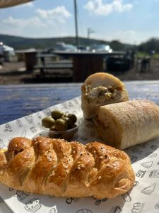 באחד הביקורים שלנו טרפנו כריך ארטישוק עם טוויסט שלגמרי נחקק בזיכרון – פשוט כי מעולם לא חשבנו לשים ארטישוק בתוך לחמנייה יחד עם טחינה ופלפל קלוי. אם תהיתם, זה לגמרי עובד. בטח כשהוא מוגש עם זיתים סוריים מבוקעים ומאפה עם גבינת פטה מהממת. השמש החורפית מהביקור הזה היא כבר זיכרון עמום – אבל הכריך הזה לגמרי קורא לנו לביקור נוסף ואביבי בקרוב.