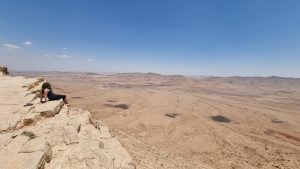 בכניסה למצפה רמון – ממש בכיכר הראשונה – חפשו את השלט המפנה לחוות האלפקות ולמצפה הכוכבים. ממשיכים ברכיבה זהירה דרך העיר אחרי שהצטיידנו בפינוקים ונשנושים לפיקניק. בכניסה לכביש הצר יש פסי האטה בולטים, ומהם ממשיכים ברכיבה בפיתולים בערך שני קילומטרים עד שמגיעים לחורש אורנים המכונה במפות “חורשת בועז” (נ.צ. 500978 / 178006). החורשה ממוקמת בגובה של כ-860 מטרים מעל לפני הים ונמצאת ממש בסמיכות לשפת מכתש רמון, כך שהיא נהנית רוב הזמן מאוויר מרענן ורוח נעימה. כבונוס נוסף יש בה גם ברז מים שמתגלה כשימושי במיוחד בשלב הזה. הנוף כאן מהפנט, והליכה קצרה תפגיש אתכם עם המכתש במלוא הדרו. נקודה אחת לשים לב אליה – המקום נמצא בשמורת טבע ולכן יש לצאת ממנו כשהשמש שוקעת.